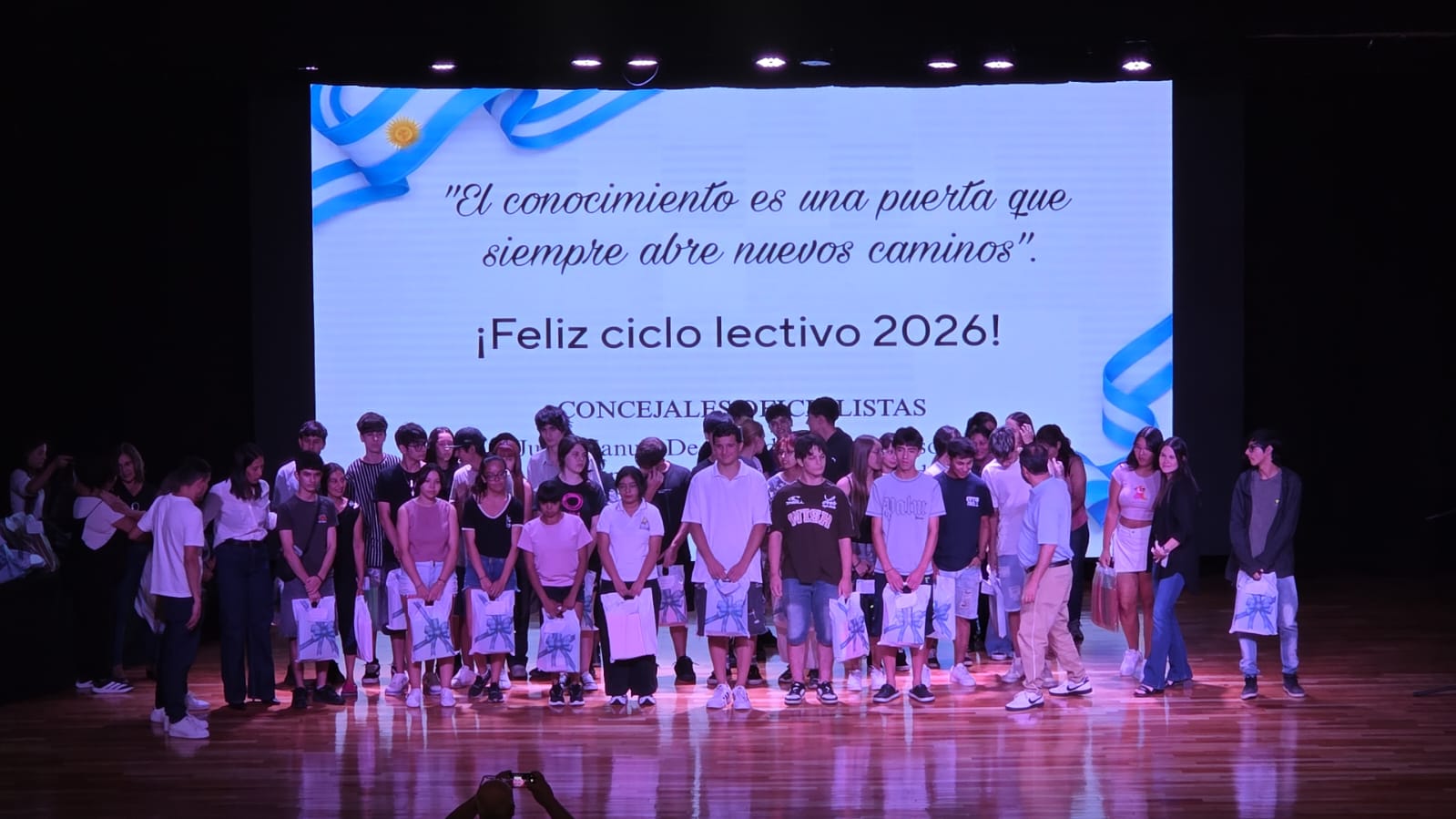 Con un Teatro municipal colmado de alumnos y familiares, se realizó el jueves 26 de febrero por la tarde, la entrega de kits de útiles escolares a 350 alumnos de escuelas secundarias.